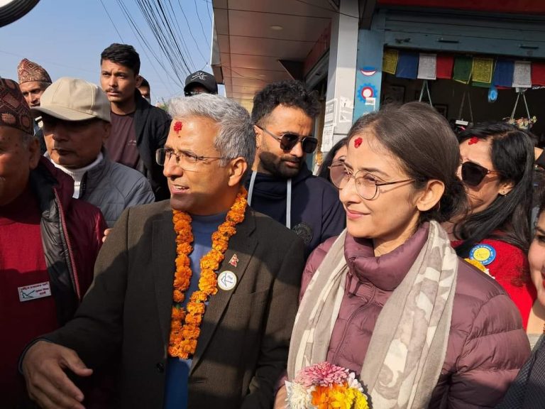 काठमाडौं । नेपालका प्रथम जननिर्वाचित प्रधानमन्त्री तथा कांग्रेसका संस्थापक बीपी कोइरालाकी नातिनी बलिवुड अभिनेत्री मनिषा कोइराला राप्रपाबाट उम्मेदवारी दिएका वरिष्ठ उपाध्यक्ष रवीन्द्र मिश्रलाई भोट माग्दै घरदैलोमा पुगेकी छन्। मंगलबार बिहान काठमाडौं क्षेत्र नम्बर १ का विभिन्न ठाउँ पुगी मनिषाले मिश्रसँगै भोट मागेकी हुन्। उनले आइतबार राप्रपाले काठमाडौंको बसन्तपुरमा आयोजित चुनावी
