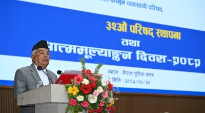 काठमाडौँ। राष्ट्रपति रामचन्द्र पौडेलले कानुन व्यवसायी लोकतन्त्र र विधिको शासनका रक्षक भएको बताउनुभएको छ । नेपाल कानुन व्यवसायी परिषद्को ३२