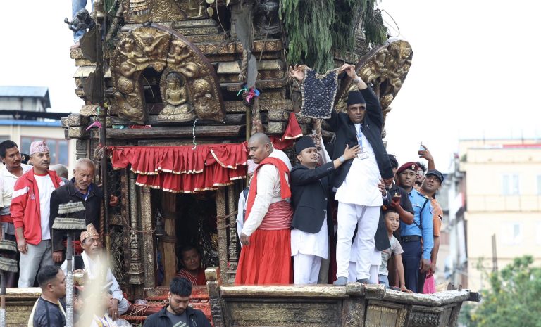 काठमाडौँ । राष्ट्रपति रामचन्द्र पौडेलले वर्षा र सहकालका देवता रातो मच्छिन्द्रनाथको भोटो जात्रा अवलोकन गर्नुभएको छ । राष्ट्रपति पौडेलले जावलाखेलमा आज अपराह्नमा आयोजित भोटोजात्रामा सरिक भइ भोटोजात्रा अवलोकन गर्नुभएको हो । मच्छिन्द्रनाथको रथ लगनखेलबाट जावलाखेल पुर्याइएको चौथो दिन भोटो देखाउने परम्पराअनुसार आज राष्ट्रपति रामचन्द्र पौडेलको उपस्थितिमा गुठी संस्थान ललितपुरका कर्मचारीले