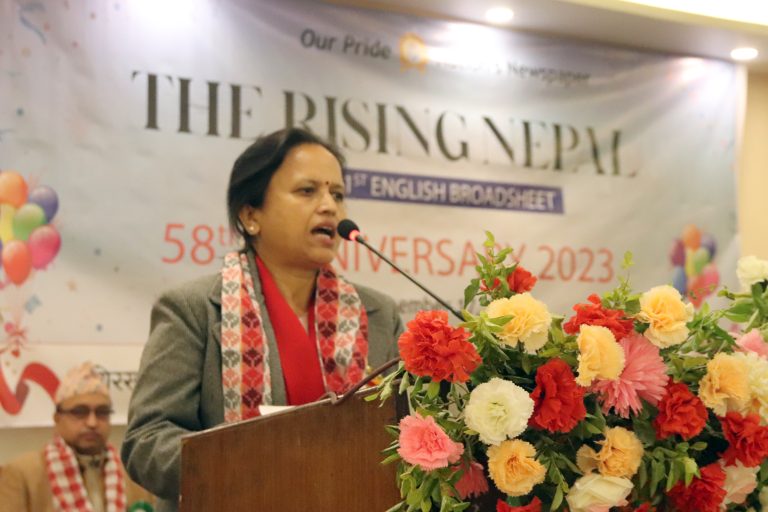 काठमाडौँ । सञ्चार तथा सूचना प्रविधिमन्त्री रेखा शर्माले विकास र समृद्धिका लागि केन्द्रित हुनुपर्नेमा मुलुक अझै पनि राजनीतिक एजेण्डामै अल्झिरहेको टिप्पणी गर्नुभएको छ । गोरखापत्र संस्थानको प्रकाशन ‘दि राइजिङ नेपाल’को ५८औँ वार्षिकोत्सवका अवसरमा मन्त्री शर्माले अबको मुद्दा विकास र समृद्धिमा केन्द्रित हुनुपर्नेमा जोड दिनुभयो । “विकास र समृद्धिमा लाग्नुपर्नेमा हामी