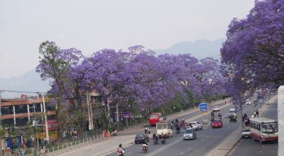 ललितपुर । ललितपुर महानगरपालिका–१४ स्थित चक्रपथ वरपर वैजनी रङको जाकाराण्डा फूल ढपक्क फुलेको छ । वसन्त ऋतुमा फूल्ने यस फूलले