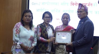 काठमाडौँ ।ललितपुर महानगरपालिकाले जेन—जी आन्दोलनका शहीद विनोद महर्जनको परिवारलाई आर्थिक सहायता उपलब्ध गराएको छ । शुक्रवार ललितपुरमा एक कार्यक्रमको आयोजना
