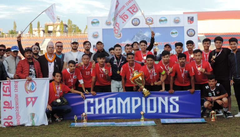 पोखरा । पोखरा महानगरपालिका खेलकुद विकास समितिद्वारा आयोजित अन्तर वडास्तरीय फुटबल प्रतियोगिताको उपाधि वडा नम्बर १४ ले जितेको छ । पोखरा रङ्गशालामा बिहीबार सम्पन्न फाइनल खेलमा वडा नम्बर १५ लाई ४–० गोलान्तरले हराउँदै वडा नम्बर १४ विजयी बनेको हो । वडा नम्बर १४ का लागि आशिष कार्की, सिद्धान्त गुरूङ, प्रताप