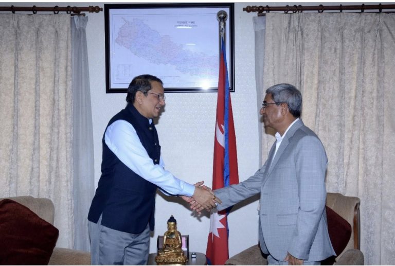 काठमाडौं । गृहमन्त्री रमेश लेखकसँग भारतीय जनता पार्टीका विदेश विभाग प्रमुख विजय चौथाईवाले बुधबार भेटवार्ता गर्नुभएको छ । नेपाल भ्रमणका लागि काठमाण्डौं आइपुग्नु भएका भारतीय जनता पार्टीका विदेश विभाग प्रमुख चौथाईवालेले सिंहदरबारस्थित गृह मन्त्रालय पुगेर गृहमन्त्री लेखकसँग भेटवार्ता गर्नुभएको हो । भेटमा गृहमन्त्री लेखकले भारतको जम्मु–कश्मिरमा भएको आतंकवादी आक्रमण घटनाको