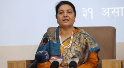 काठमाडौं । पूर्वराष्ट्रपति विद्यादेवी भण्डारीले ऐतिहासिक राजनीतिक उपलब्धिको रक्षा, प्रयोग र विकास गर्दै अघि बढ्न्ुपर्ने बताउनुभएको छ । गणतन्त्र दिवसका