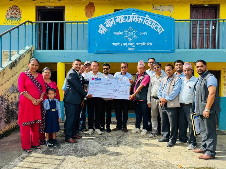डुम्रे, (तनहुँ) । नेपाल इन्भेष्टमेन्ट मेगा बैंकले यहाँको एक विद्यालयलाई सहयोग गरेको छ । गत जेठमा म्याग्दे गाउँपालिका–४ थर्पुस्थित मीन माध्यमिक विद्यालय भवनको छानो हुरीले उडाएपछि अध्ययन–अध्यापन प्रभावित भएको जानकारी पाएपछि संस्थागत सामाजिक उत्तरदायित्वअन्तर्गत बैंकले रु एक लाख खर्चेर विद्यालयलाई टिनको छानो हालिदिएको हो । विद्यालयका प्रधानाध्यापक राजेन्द्र भण्डारीका अनुसार