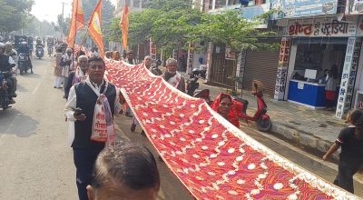 काठमाडौँ । सीताराम विवाह पञ्चमीको अवसर पारेर जनकपुरधामस्थित जानकी मन्दिरमा १ सय ११ मिटर लामो चुनरी चढाइएको छ । जनकपुरधाममा