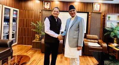काठमाडौँ । उपप्रधानमन्त्री एवं अर्थमन्त्री विष्णुप्रसाद पौडेल र भारतीय जनता पार्टी (भाजपा) का विदेश विभाग प्रमुख विजय चौथाइवालेबीच भेटवार्ता भएको