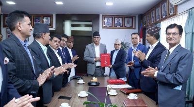 काठमाडौँ । राजस्व परामर्श समितिले उपप्रधानमन्त्री एवं अर्थमन्त्री विष्णुप्रसाद पौडेलसमक्ष प्रतिवेदन पेस गरेको छ । अर्थ मन्त्रालयमा आज आयोजित कार्यक्रममा