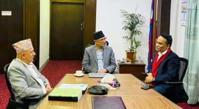 काठमाडौँ । उपप्रधान एवं अर्थमन्त्री विष्णुप्रसाद पौडेलले नेपाली कांग्रेसका सभापति शेरबहादुर देउवासँग आगामी आर्थिक वर्ष २०८२/८३ को बजेटबारे परामर्श गर्नुभएको