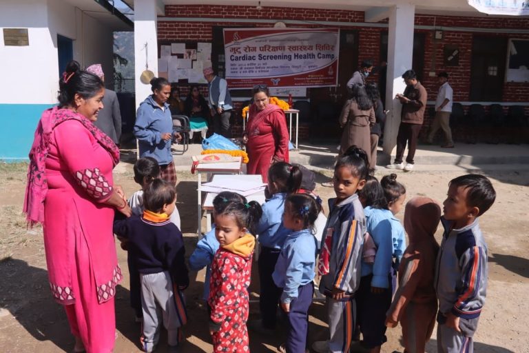 नुवाकोट । यहाँको शिवपुरी गाउँपालिका–८ स्थित जनज्ञान माध्यमिक विद्यालयका बालबालिकाको आज निःशुल्क मुटु परीक्षण गरिएको छ । पल्मोनरी हाइपरटेन्सन एशोसियन नेपालद्वारा आयोजित कार्यक्रममा ४२७ बालबालिकाको मुटु परीक्षण गरिएको सो संस्थाका अध्यक्ष सम्झना खनाल गड्तौलाले जानकारी दिनुभयो । शिविरमा काठमाण्डु मेडिकल कलेज, वीरेन्द्र सैनिक र कान्ति बाल अस्पतालका चिकित्सकले परीक्षण र