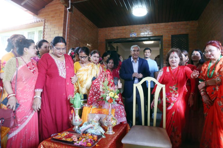 काठमाडौँ। नेपाली कांग्रेसका सभापति एवं पूर्वप्रधानमन्त्री शेरबहादुर देउवा निवास बुढानिलकण्ठमा सुदूरपश्चिमको प्रमुख गौरा पर्व मनाइएको छ । पर्वका अवसरमा सभापति देउवाका धर्मपत्नी एवं परराष्ट्रमन्त्री डा आरजु राणा देउवालगायत सुदूरपश्चिम घर भइ काठमाडौँमा रहनुभएका महिलाले गौराको मूर्तिलाई पार्वतीको प्रतिकका रूपमा पूजा गर्नुभएको थियो । साथै उहाँहरुले देउडा गीत गाउँदै नाच्दै एकापसमा