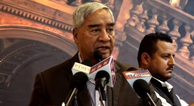 नेपाली काँग्रेसका सभापति शेरबहादुर देउवाले प्रधानमन्त्री केपी शर्मा ओलीलाई नेपाली काँग्रेसको पूर्ण समर्थन रहेको बताउनुभएको छ ।