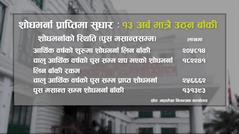 शोधभर्ना प्राप्तिमा सुधारः १३ अर्ब मात्रै उठ्न बाँकी