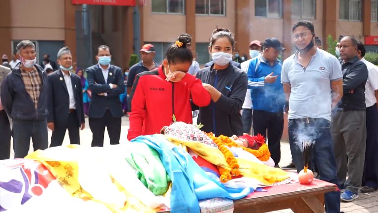 काठमाडौं । १३ औं सागमा नेपालका लागि भारोत्तोलनबाट स्वर्ण पदक दिलाएकी सञ्जु चौधरीलाई राष्ट्रिय खेलकुद परिषदले मंगलबार अन्तिम श्रद्धान्जली दिएको छ । त्रिपुरेश्वर स्थित राष्ट्रिय खेलकुद परिषदको परिषदमा राष्ट्रिय खेलकुद परिषद्का सदस्य सचिव टंकलाल घिसिङ र नेपाल ओलम्पिक कमिटिका अध्यक्ष जीवनराम श्रेष्ठले फुलमाला तथा अबिरबाट श्रद्धान्जी अर्पण गरे । यस्तै