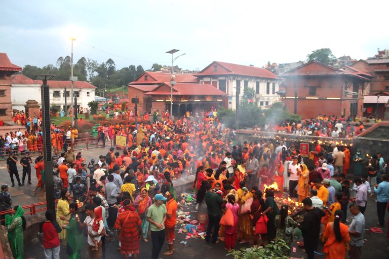 काठमाडौं । आज साउनको महिनाको तेस्रो सोमबार । बिहानैदेखि पशुपतिनाथ लगायत देशभरका शिवालयहरुमा भक्तजनको भीड लागेको छ । साउन महिना भगवान् शिवको महिना र सोमबार भगवान् शिवजीको प्रिय बार भएकाले व्रत बस्ने परम्परा छ । यस दिन विशेष रुपमा आशुतोष भगवान् शिवको पूजा, आराधना गरिन्छ । सोमवारको अवसरमा काठमाडौँको पशुपतिनाथमा