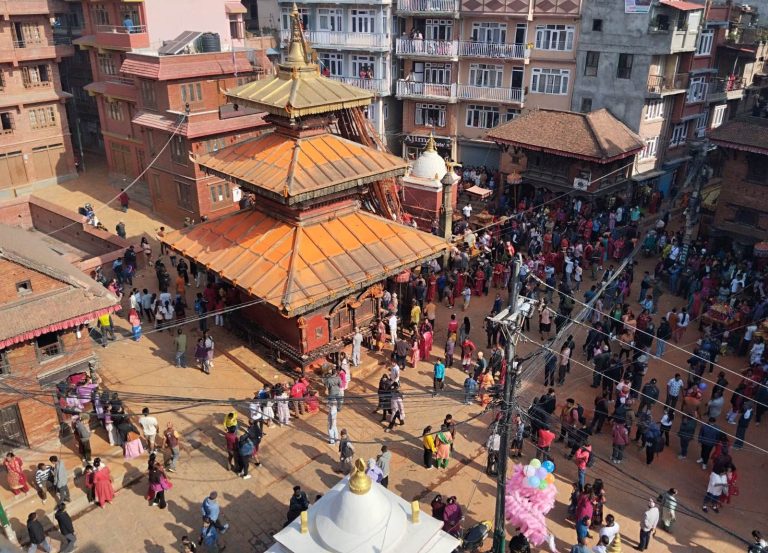 भक्तपुर । मानिसको भीड, भीडमा सबैको टाउको, अनुहार, शरीर सबै फुस्रो अबिरैअबिरले राताम्मे । अगाडि हातहातमा धपक्क बलेको चिरागका समूह, त्यसपछि धिमे र मुस्या बाजा बजाउने अर्को समूह, त्यसपछि आ–आफ्नो टोलका देवीदेवतालाई विराजमान गराइएका खट बोकेर टोलटोल घुम्दै बालबालिका, युवायुवतीदेखि ज्येष्ठ नागरिकसमेत बिहानै जात्राको भीडमा सिन्दुर खेल्दै रमाउँदै आज भव्य