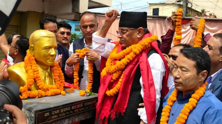 लुम्बिनी। नेकपा (माओवादी केन्द्र) का अध्यक्ष पुष्पकमल दाहाल ‘प्रचण्ड’ले सहिद स्मृति प्रतिष्ठान रुपन्देहीका संस्थापक अध्यक्ष स्वर्गीय रामप्रसाद बन्जाडे ‘टङ्कमणि’को आज बुटवलमा सालिक अनावरण गर्नुभएको छ । सो अवसरमा अध्यक्ष दाहालले माओवादीले तत्कालिन अवस्थामा सुरु गरेको सशस्त्र विद्रोहमा स्वर्गिय टङ्कमणिको अतुलनीय योगदान रहेको बताउनुभयो । दिवङ्गत नेता टङ्कमणिबाट पार्टीले धेरै लिए