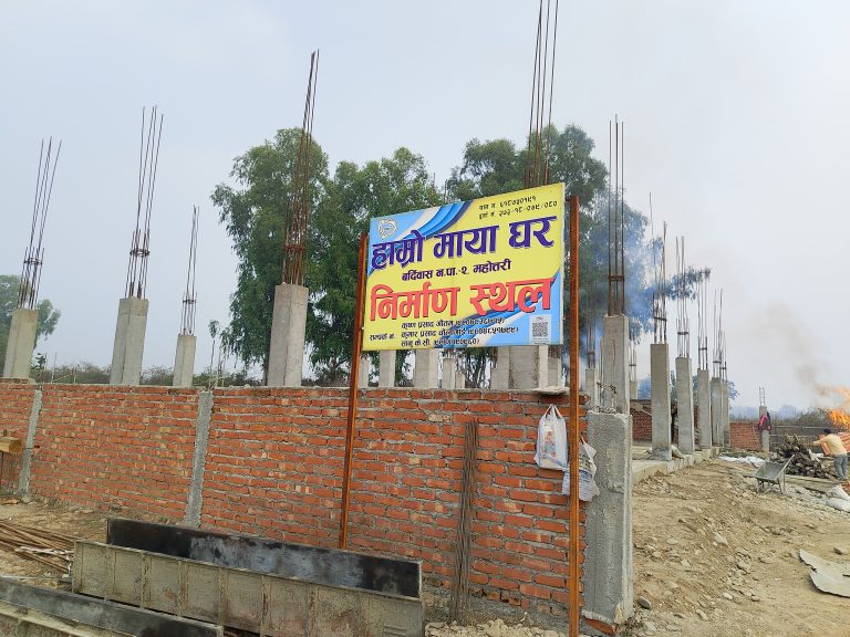 जलेश्वर । जिल्लाको बर्दिबास नगरपालिकामा निर्माणाधीन ‘हाम्रो माया घर’ ले तीव्रता पाएको छ । मधेश प्रदेशका सडक मानव, बेसहारा, अशक्त र असहायलाई सहारा दिने उद्देश्यले बर्दिबास–२ मा सुरु भएको ‘हाम्रो माया घर’ अहिले तीव्र गतिमा निर्माण अगाडि बढेको नगरप्रमुख प्रल्हादकुमार क्षेत्रीले बताउनुभयो । परोपकारी भावना बोकेका स्थानीय १५ जना दाताले