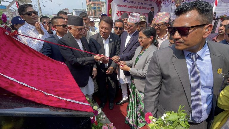 काठमाडौं । प्रधानमन्त्री केपी शर्मा ओली भरतपुरको गोन्द्राङदेखि पुल्चोकसम्म ६ लेनको सडक उद्घाटन गर्नुभएको छ । ६ किलोमिटर लामो ६ लेनको सडकको उद्घाटन गर्न प्रधानमन्त्री ओलीसँगै उपप्रधान तथा सहरी विकास मन्त्री प्रकाशमान सिंह र भौतिक योजना तथा पूर्वाधार मन्त्री देवेन्द्र दाहाल पनि भरतपुर पुग्नु भएको छ । भरतपुरको गोन्द्राङदेखि पुल्चोकसम्म
